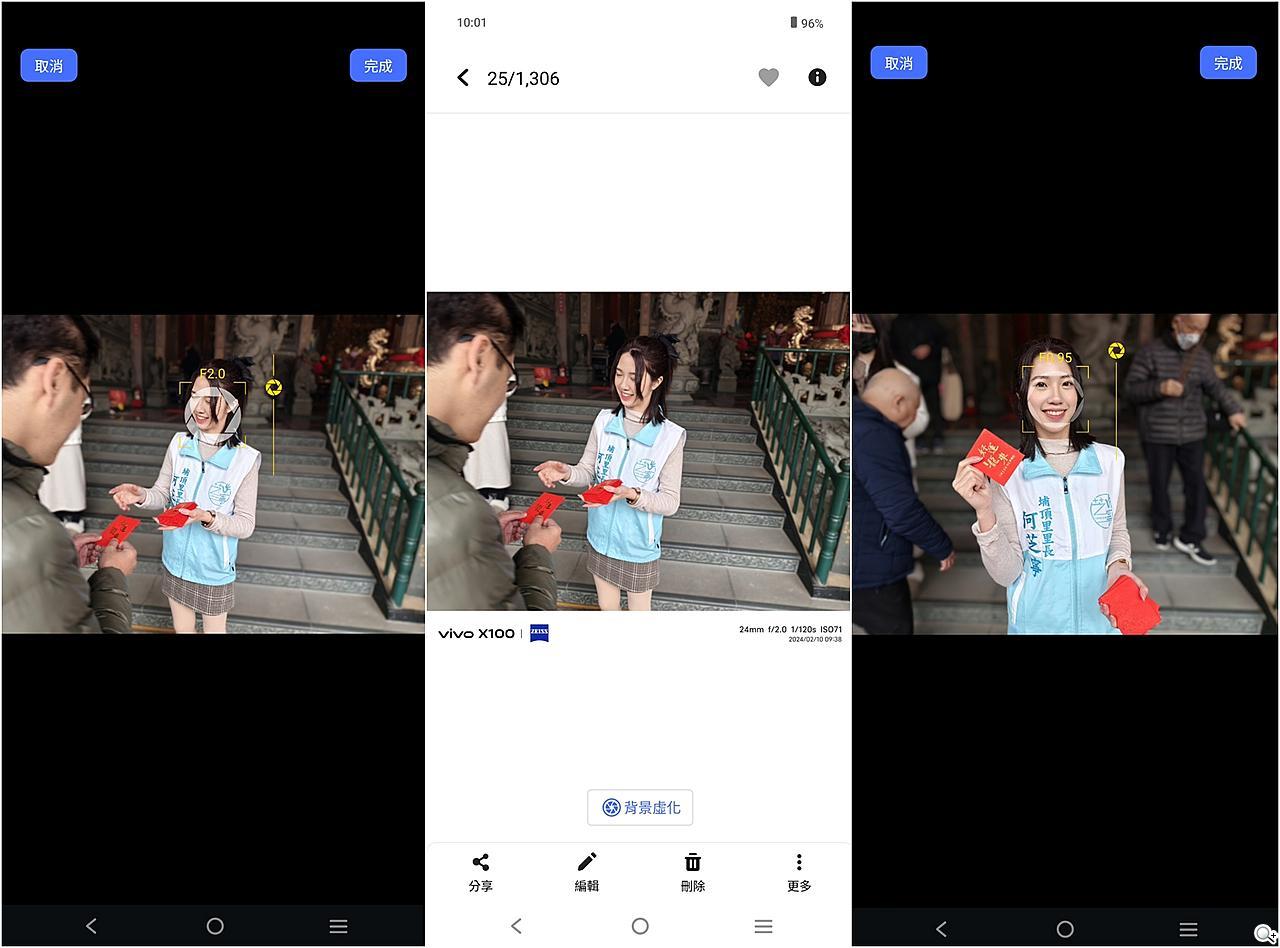 在vivo X100人像拍攝後,可以調整主體,同時調整作背景虛化調校。