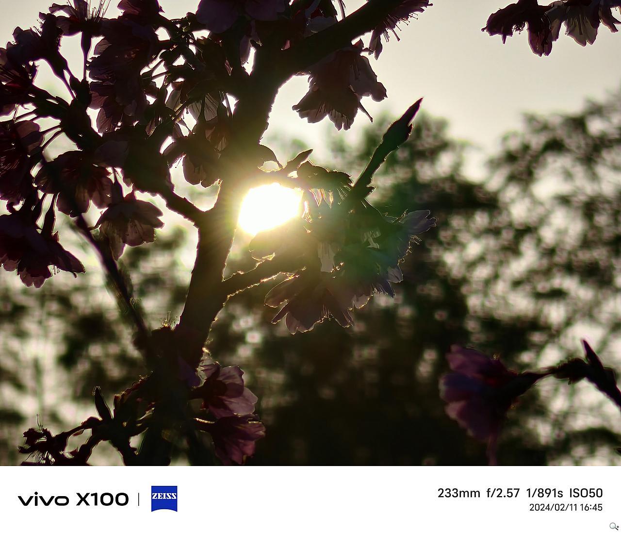 透過櫻花枝葉間作為取景窗,在日出日落等場景深度優化調校,大幅提升暖色調懸日效果vivo X100捕捉那一剎那的日落更是好看。