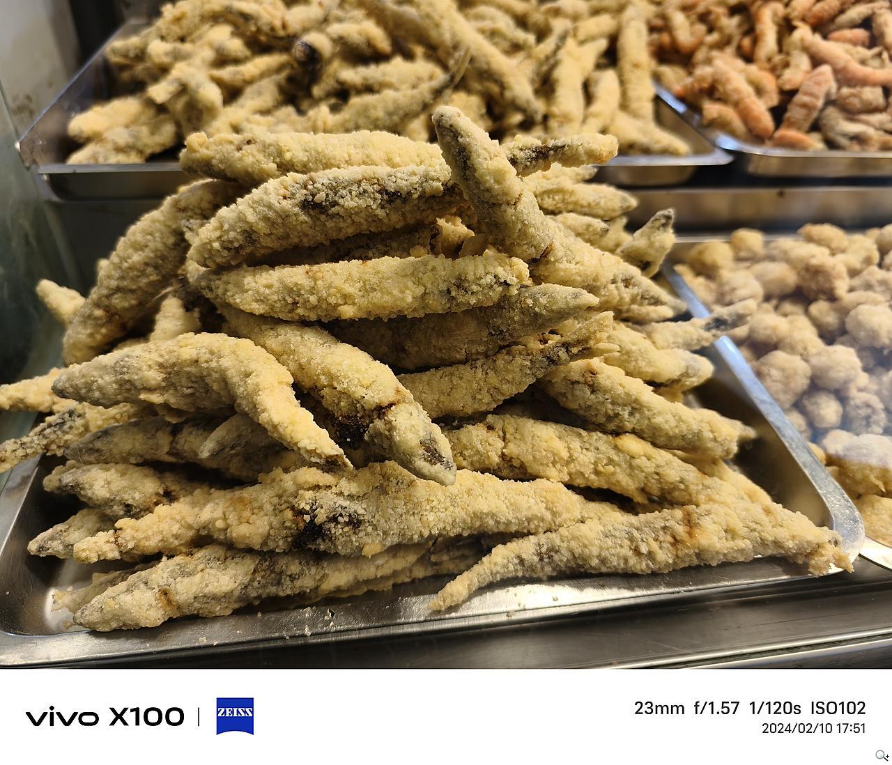 小吃炸物的魚類、魷魚等,都是是金黃通透的誘人。