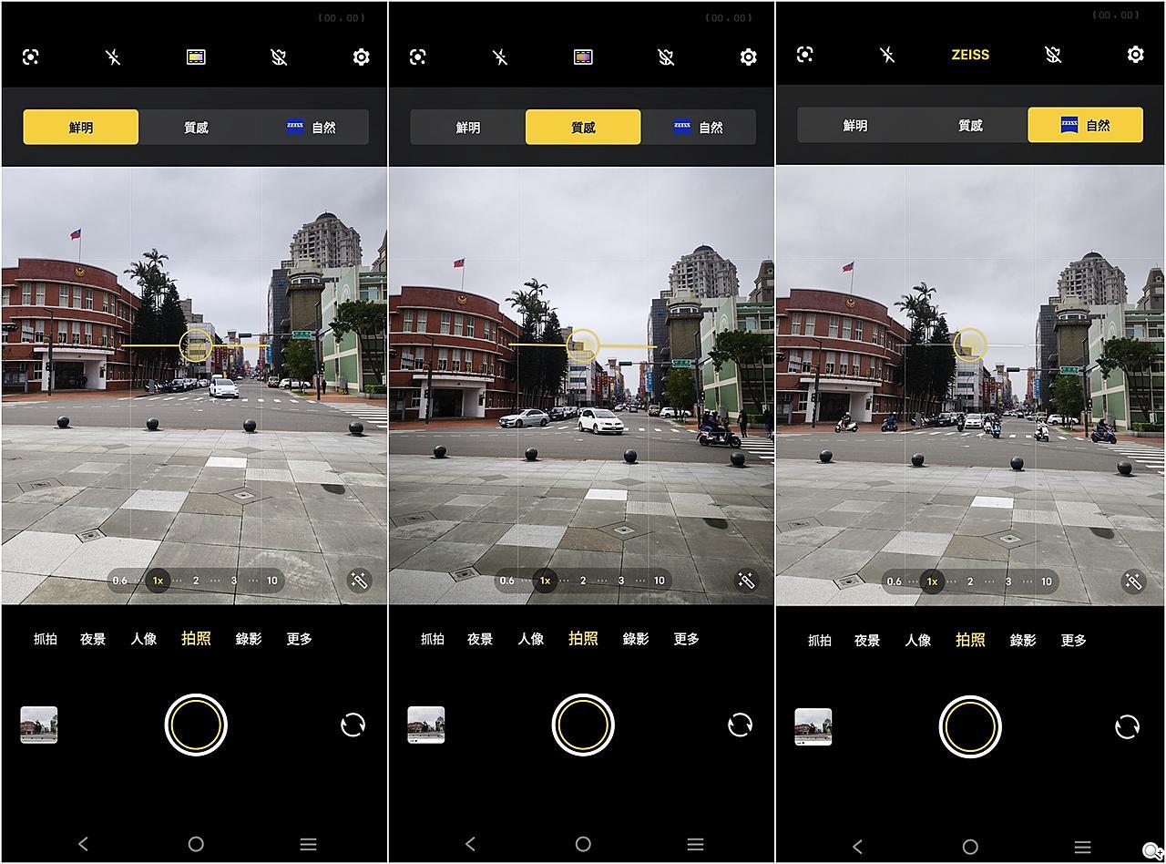 在拍照模式下,有三種不一樣的效果鮮明、質感、自然,不同的成片表現,可以依照自已喜歡的景色、物件照片感受以及可調校明暗度。
